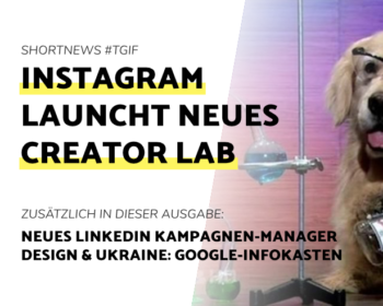 Diese Woche gibt es einige Veränderungen im Social Web: Instagram startet ein neues Creator Lab, LinkedIn gestaltet seinen Kampagnen-Manager um und Google fügt einen neuen Infokasten zum Thema Ukraine-Krieg in den Suchergebnissen hinzu. Viel Spaß mit unserem Wort zum Freitag.