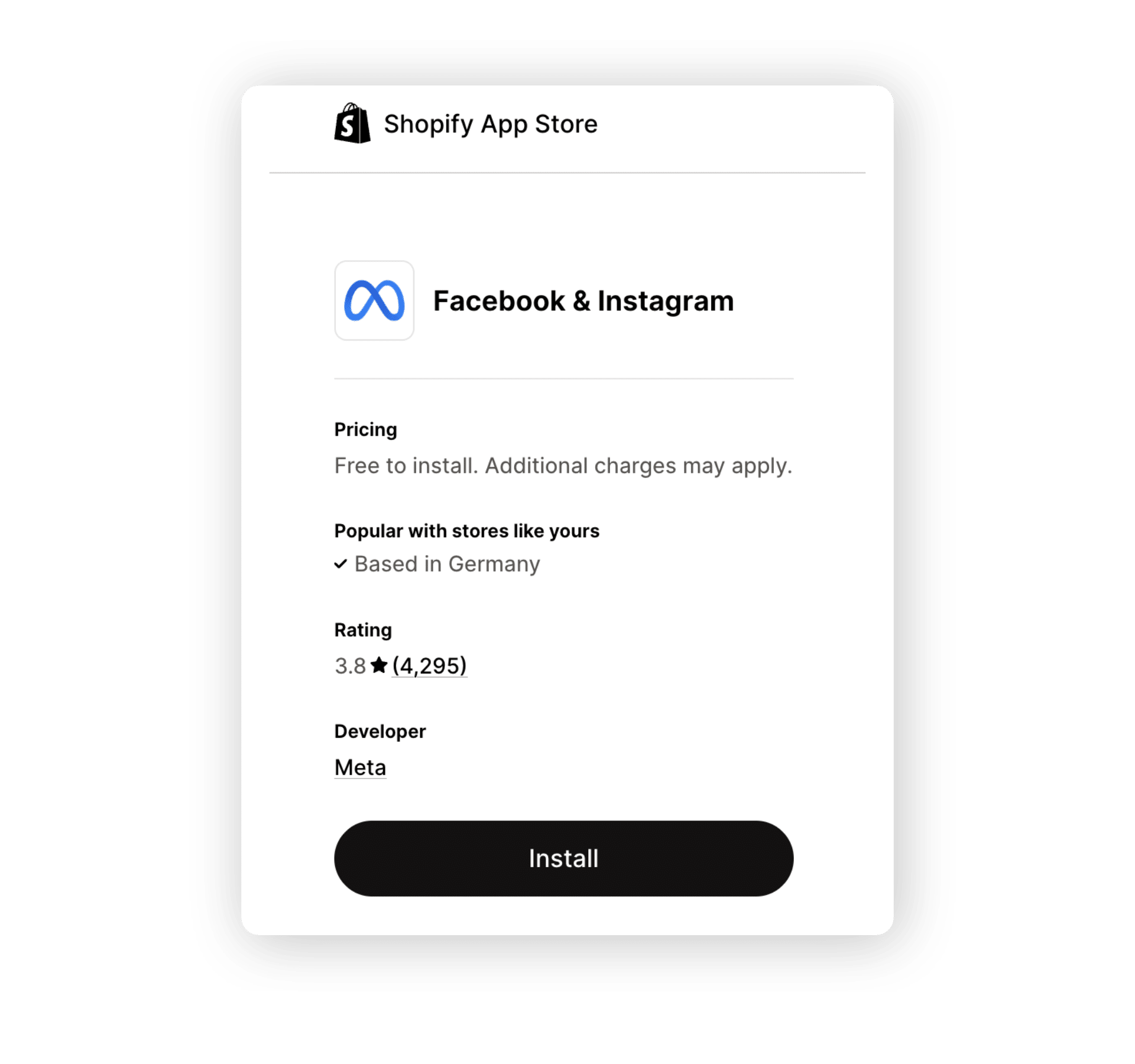 Nun gelangt ihr auf den Shopify App Store und kannst die Anbindung mit einem Klick auf “Install” installieren.