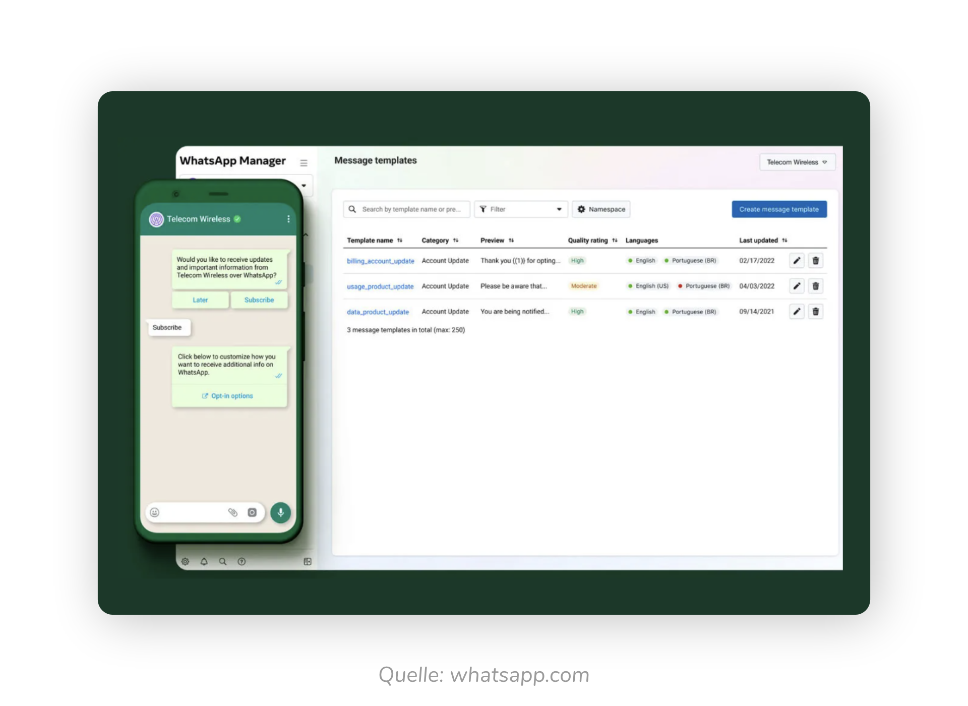 Darüber hinaus hat sich das Preismodell für die WhatsApp Business Platform gefestigt: Unternehmen zahlen pro Nachricht, wenn sie Nachrichten an NutzerInnen senden.